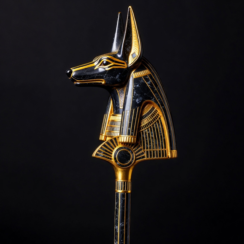 Golden Anubis Staff on Black Background