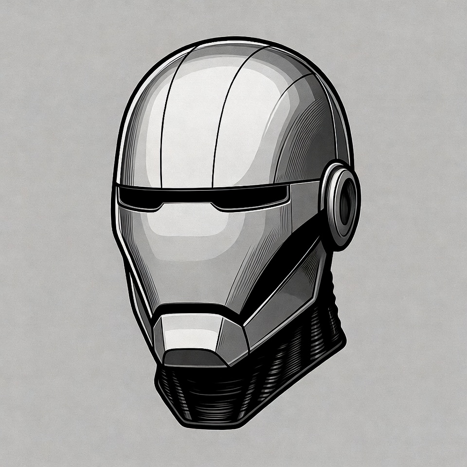 clipart, collar, digital art, digital illustration, ear guards, futuristic, futuristic helmet, gray background, helmet, illustration, metallic helmet, robot, robot head, sci-fi, sci-fi robot, silver, silver helmet, visor eyes, robot helmet
