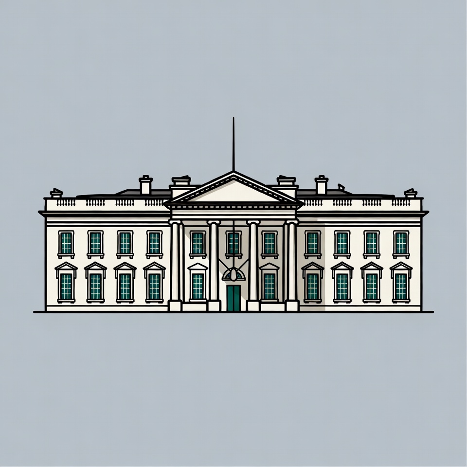 USA, Washington DC, architecture, clipart, columns, flagpole, government building, historic building, illustration, isolated background, line drawing, neoclassical, president residence, vector art, windows, White House