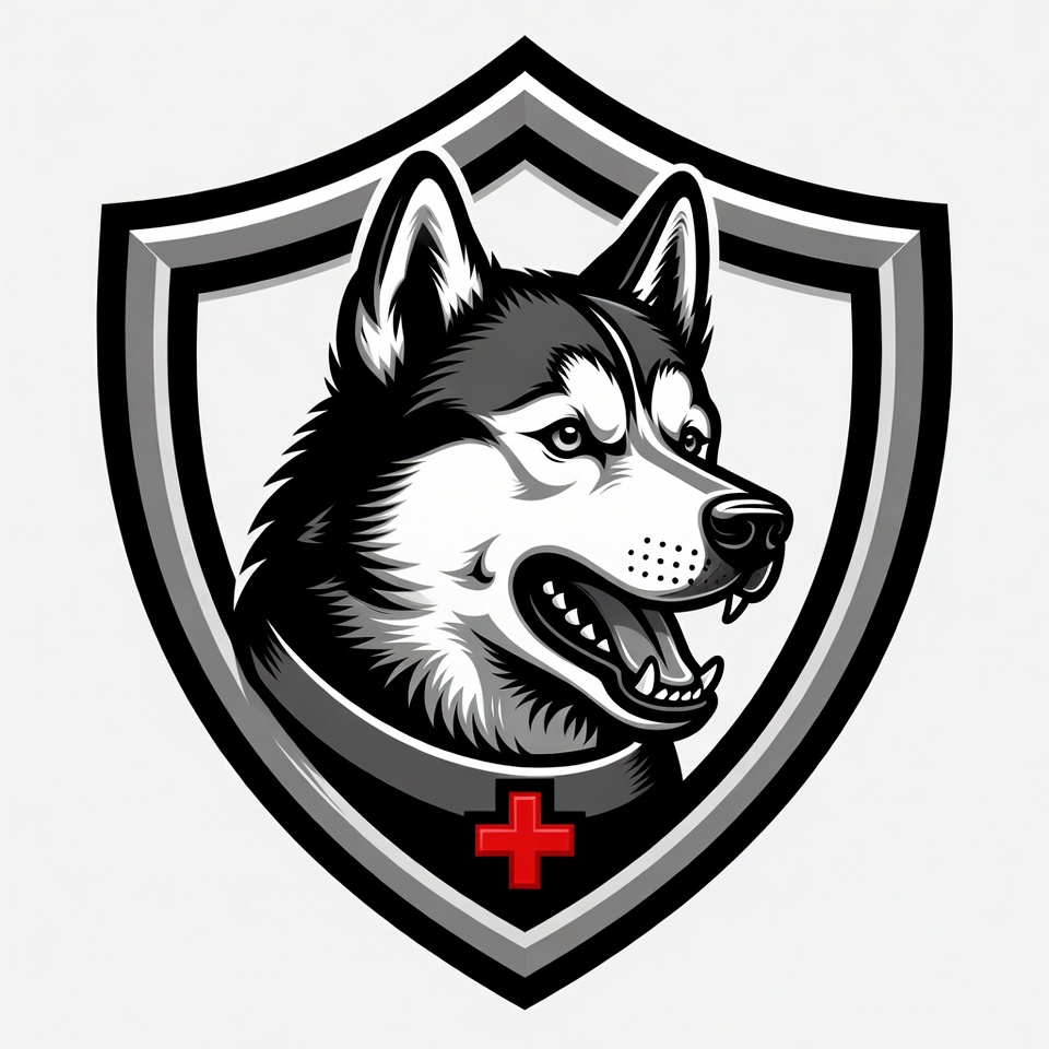 Husky Dog in Shield with Red Cross