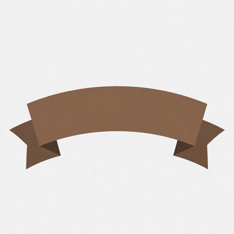 A simple brown ribbon banner with curved top and pointed ends sits on a white background. The banner is empty and ready for text. It has a flat, vector illustration style.