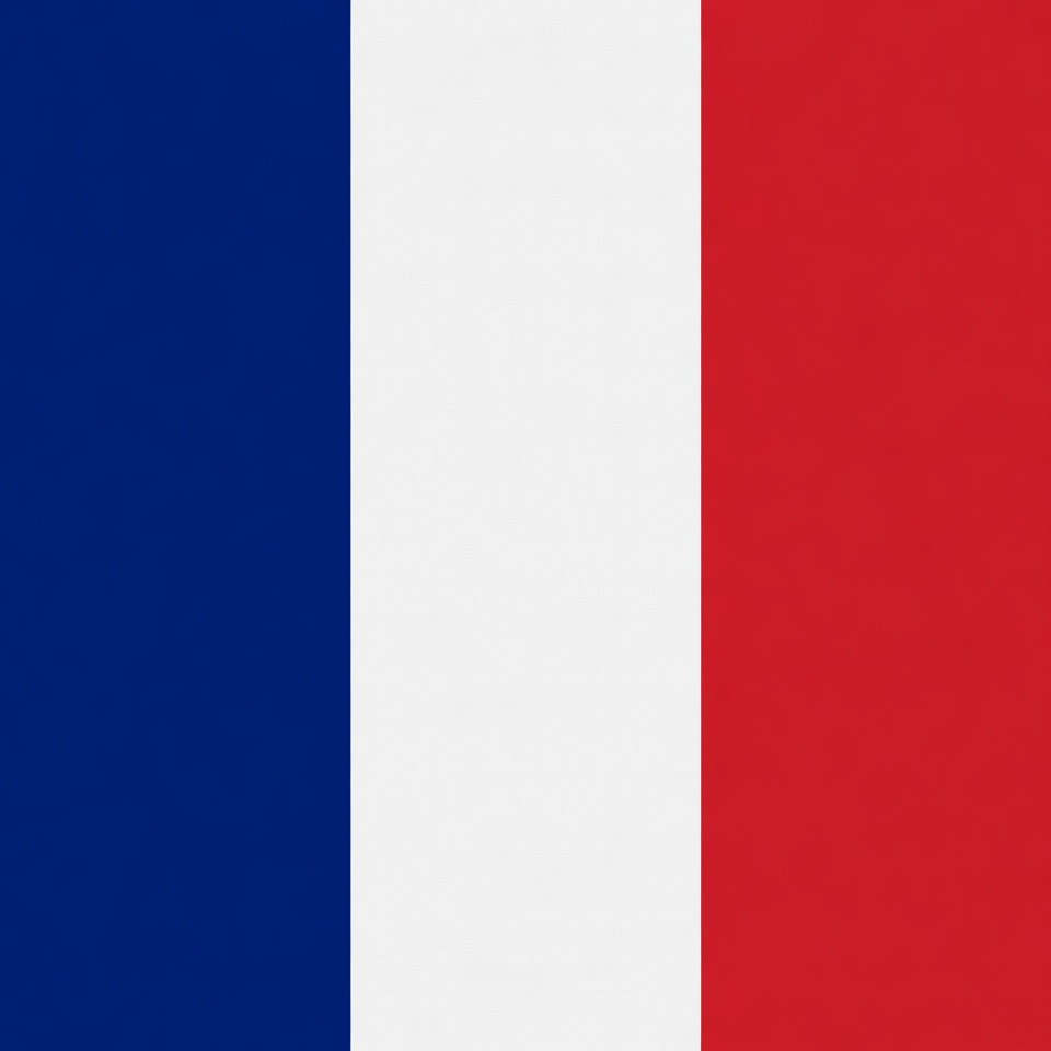 The French national flag features three vertical stripes. The left stripe is navy blue, the middle stripe is white, and the right stripe is bright red.