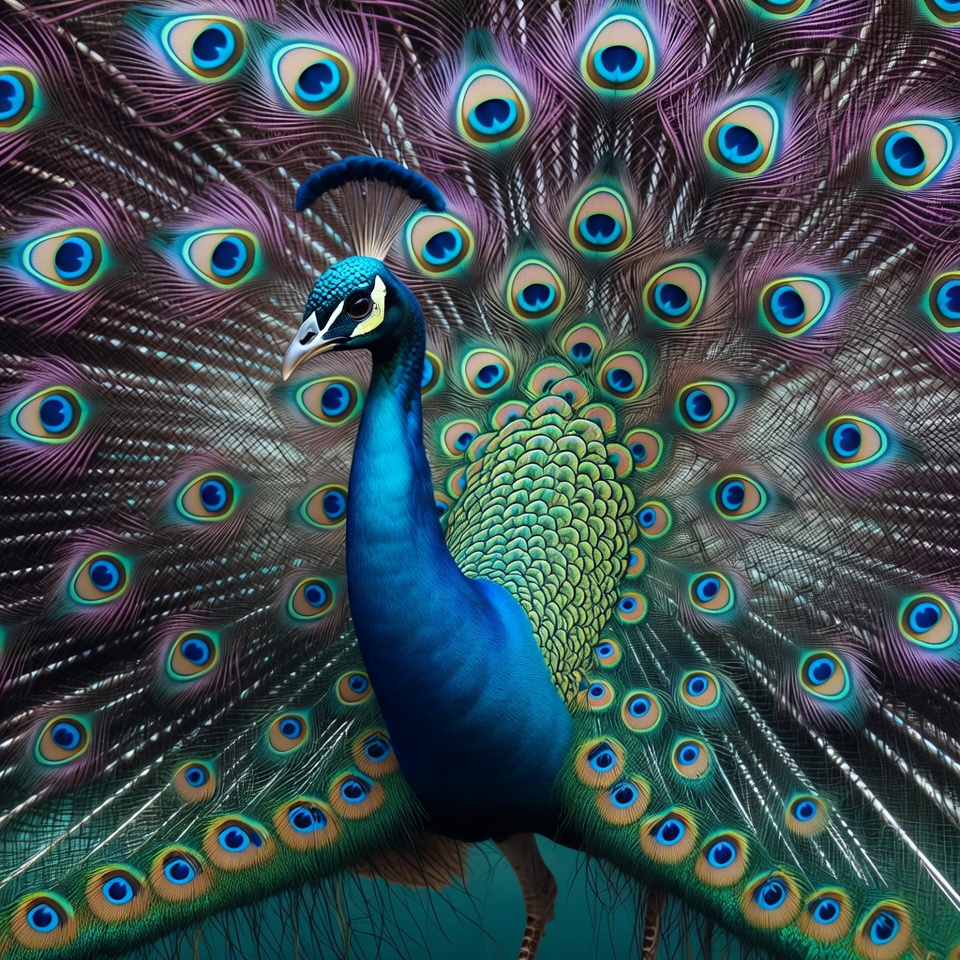 Peacock displaying vibrant tail feathers