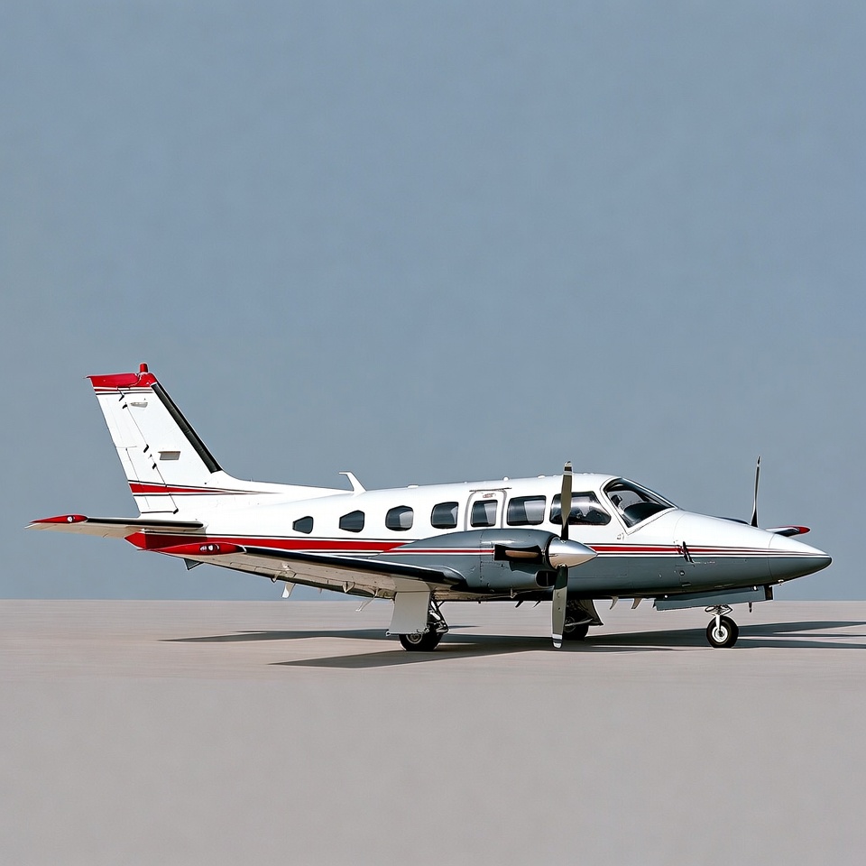 Beechcraft, aircraft, aviation, aviation photography, blue sky, gray stripes, isolated background, landing gear, parked airplane, passenger windows, private jet, propeller plane, red accents, small plane, tarmac, twin engine, white airplane, airplane