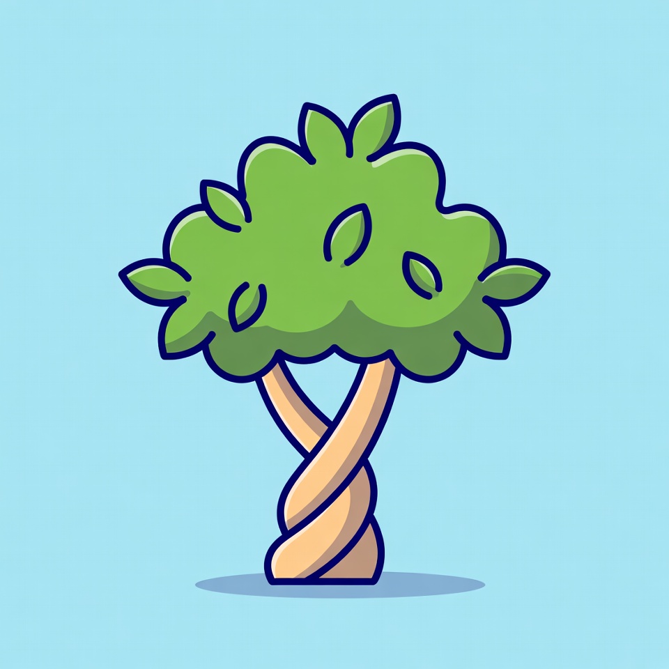 blue background, brown trunk, clipart, flat design, green leaves, green tree, illustration, isolated background, leafy tree, nature icon, simple tree, tree, twisted trunk, vector art, cartoon tree