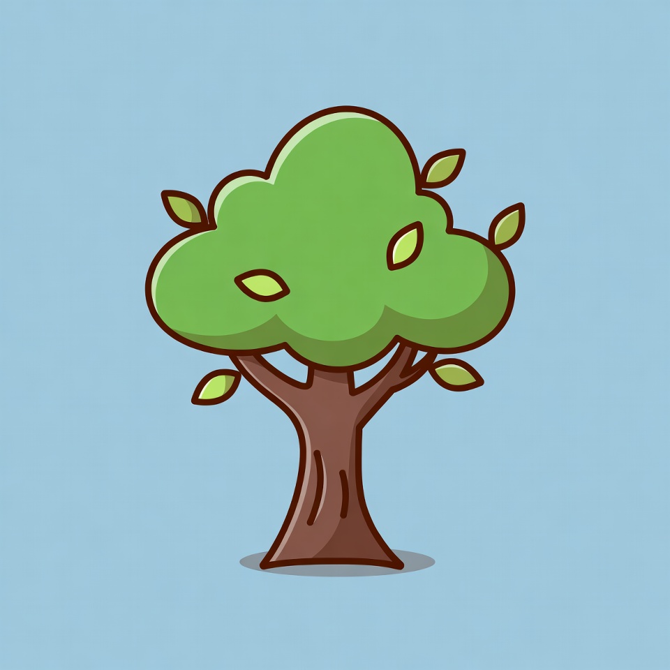 blue background, brown trunk, clipart, drawing, flat design, graphic, green tree, isolated background, leafy tree, leaves, nature, plant, simple tree, tree illustration, vector art, cartoon tree