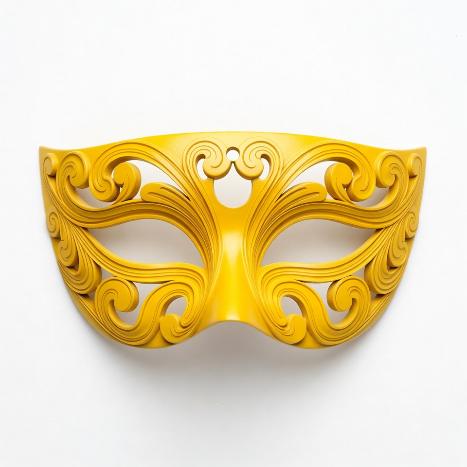 carnival mask, costume accessory, curved mask, decorative mask, detailed carving, elegant mask, eye mask, fancy mask, filigree design, isolated background, masquerade mask, ornate mask, party mask, shiny gold, swirling patterns, venetian mask, white background, gold mask
