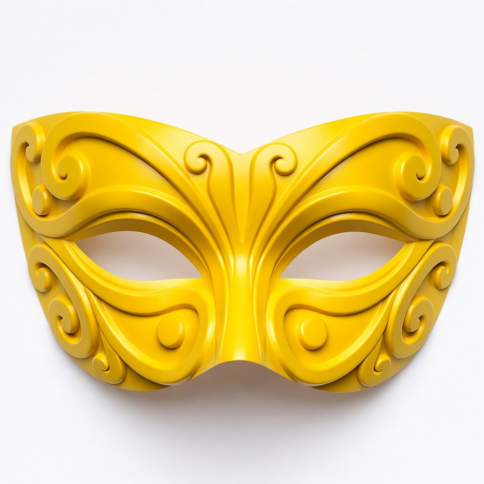 3D rendered, artistic, carnival mask, clipart, costume accessory, curved details, decoration, detailed, elegant, eye mask, face covering, fancy mask, golden, intricate design, isolated, luxury, masquerade ball, masquerade mask, ornate mask, party mask, shiny, swirling patterns, venetian style, white background, gold mask