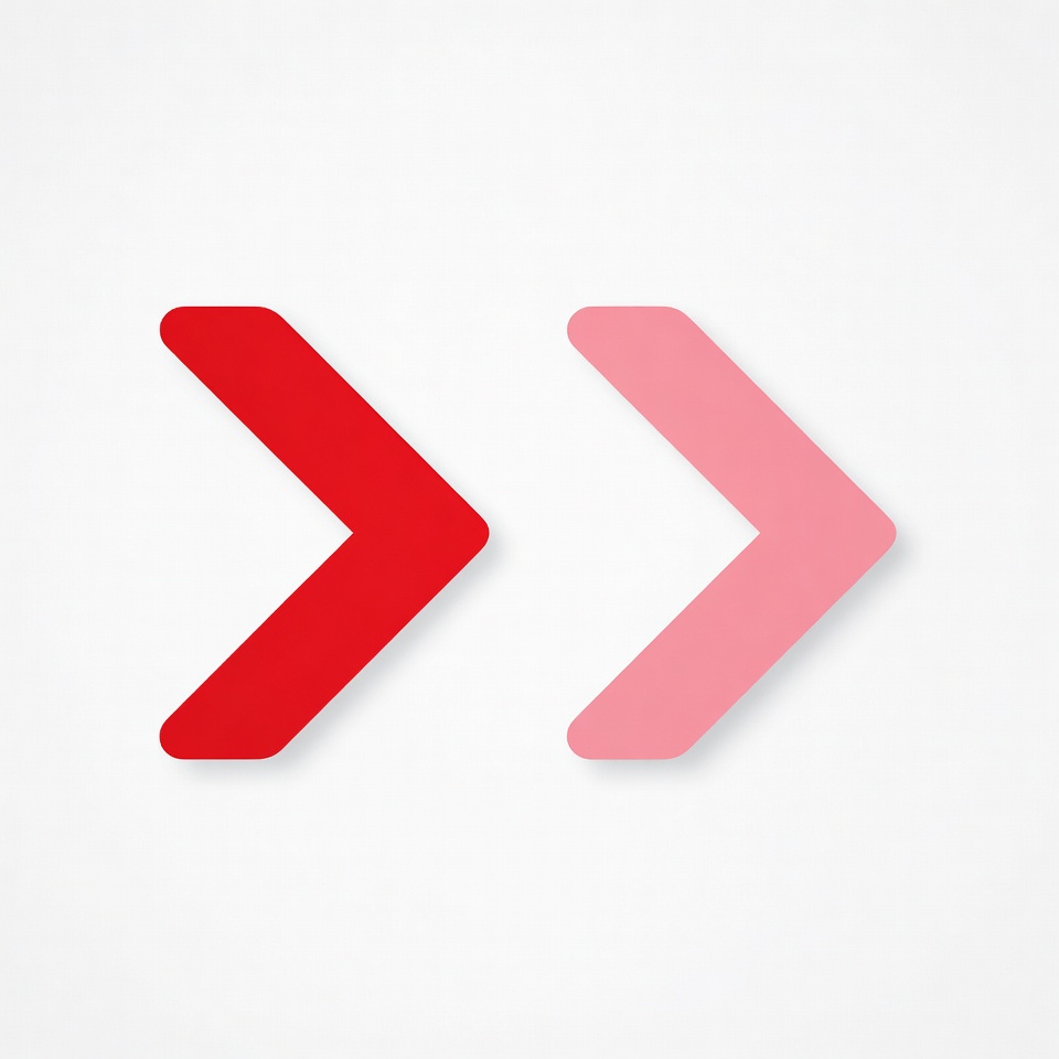 Two clipart arrows on a white background. The left arrow is solid red and points right. The right arrow is solid pink and also points right.