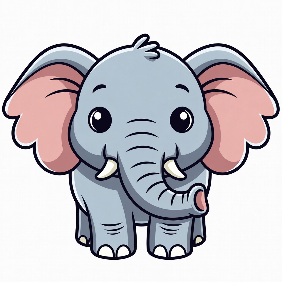 adorable elephant, animal clipart, baby elephant, big eyes, cartoon elephant, chibi elephant, elephant cartoon, elephant drawing, elephant illustration, gray elephant, isolated background, kawaii elephant, pink ears, vector elephant, cute elephant