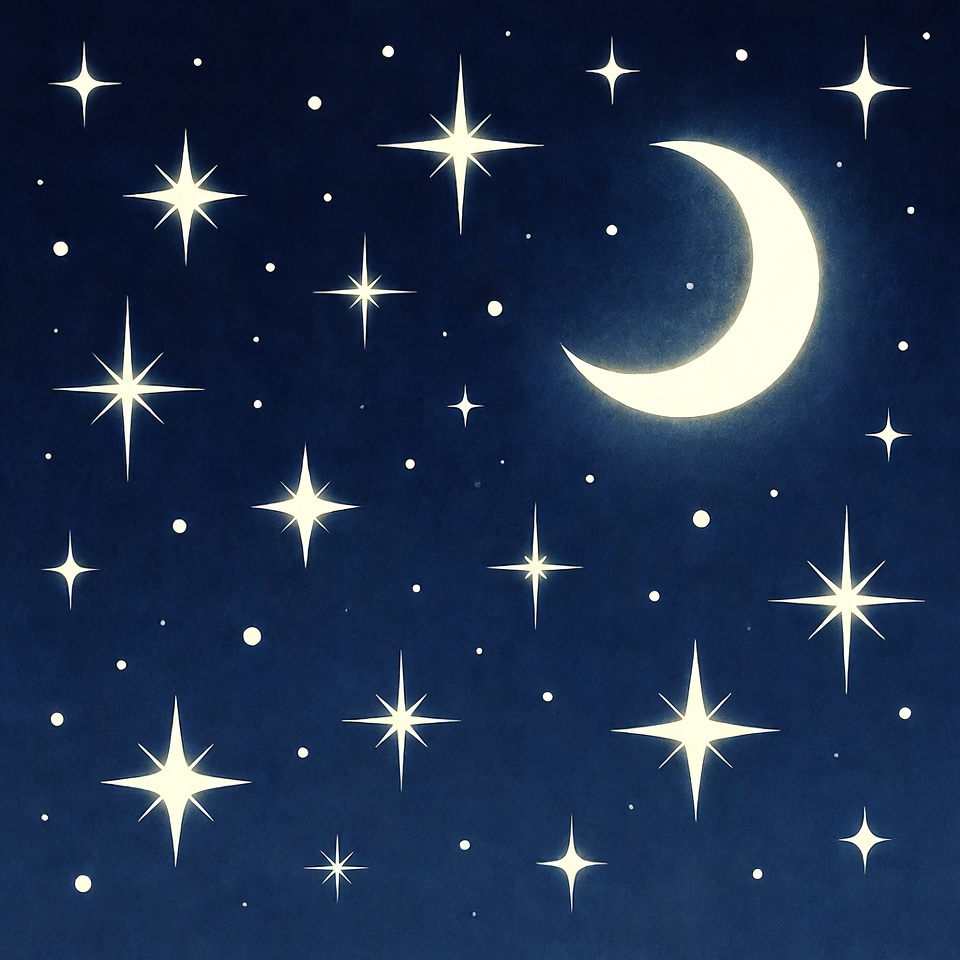 Crescent Moon and Stars Night Sky
