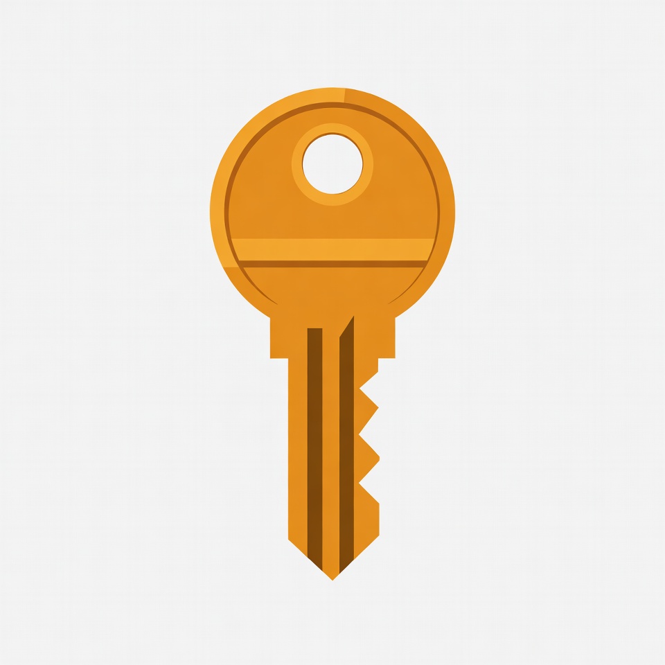 clipart, door key, flat design, graphic, house key, icon, illustration, isolated background, lock, orange key, security, simple, vector, key