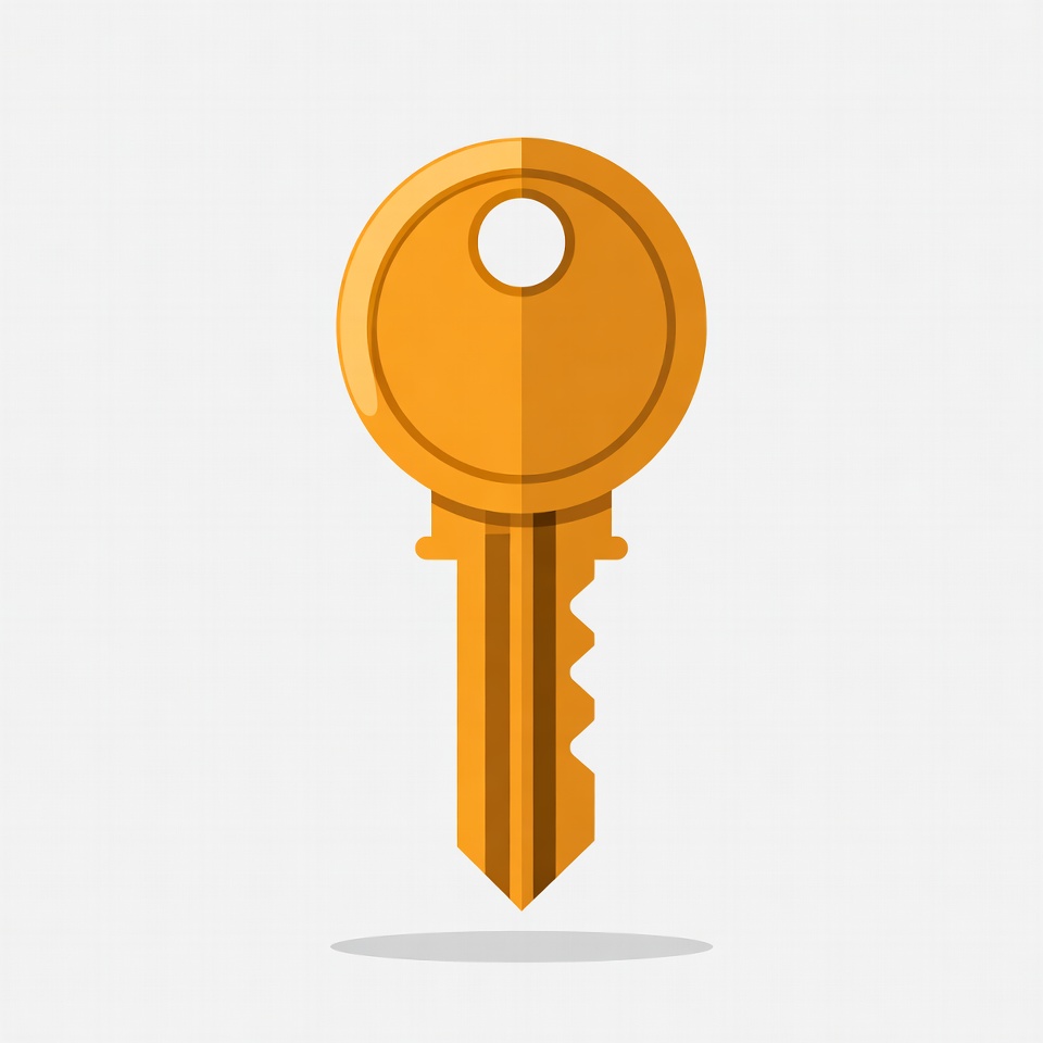 clipart, door key, flat design, gold key, golden key, illustration, isolated background, jagged teeth, lock key, metal key, orange key, security, simple icon, vector, key