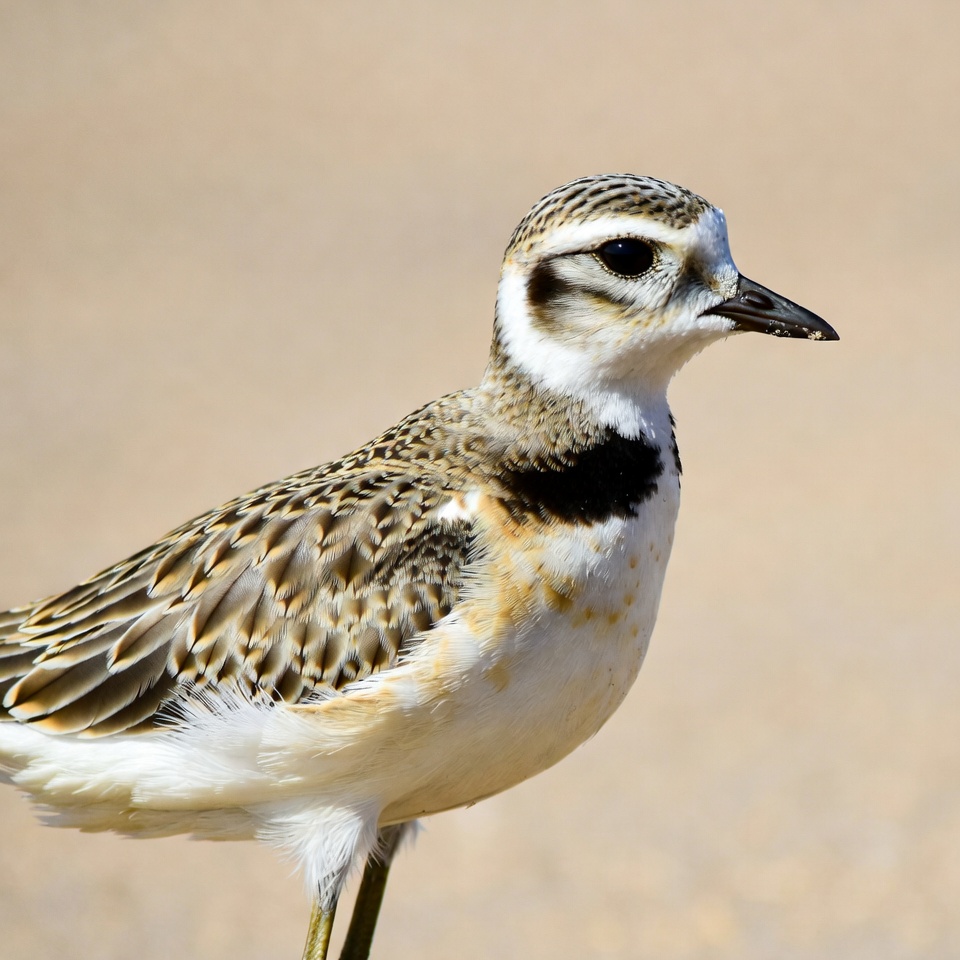 animal, beach, bird, black bands, brown feathers, feathers, isolated background, nature, outdoors, plover, sand, shorebird, speckled, standing, white feathers, wildlife, yellow legs, killdeer