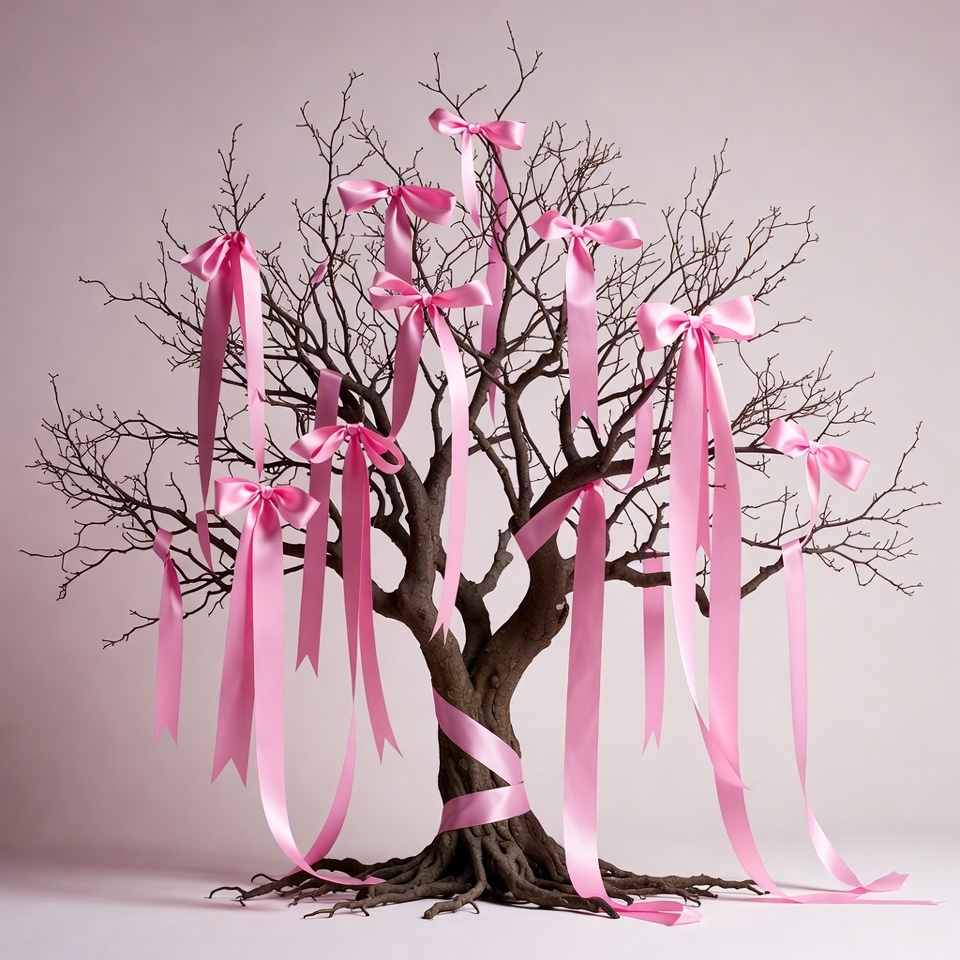 bare tree, bows, branches, breast cancer awareness, decoration, isolated background, pink background, pink tree, ribbon tree, roots, tree, trunk, pink ribbons