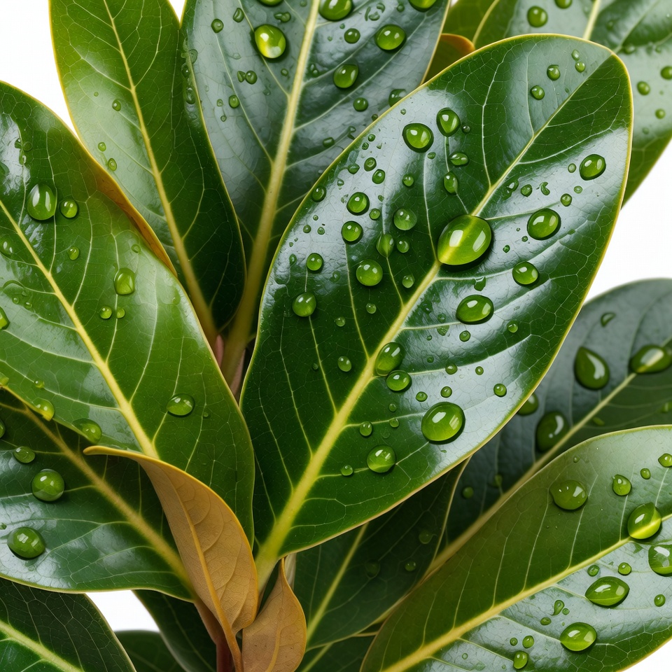 botany, close-up, dew drops, foliage, fresh leaves, garden plant, glossy leaves, houseplant, isolated background, leaf texture, macro, nature, plant leaves, tropical plant, vibrant green, water beads, water droplets, wet leaves, white veins, green leaves