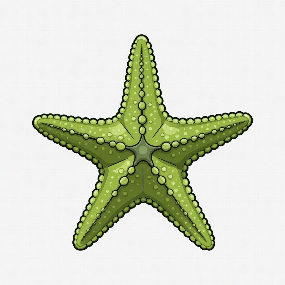 cartoon style, clipart, five arms, green starfish, illustration, isolated background, marine animal, ocean creature, sea star, textured bumps, vector art, starfish
