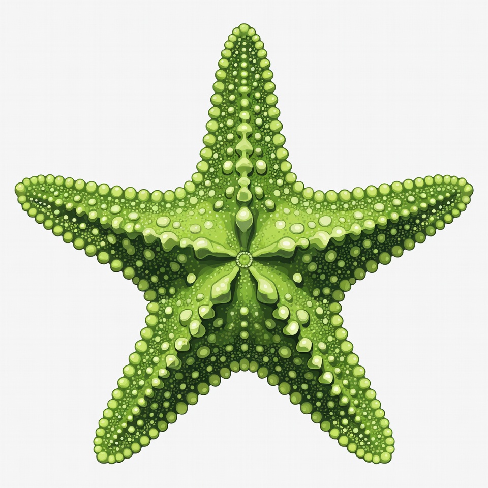 bumpy texture, clipart, five arms, green starfish, illustration, isolated background, lime green, marine animal, ocean creature, sea star, white background, starfish