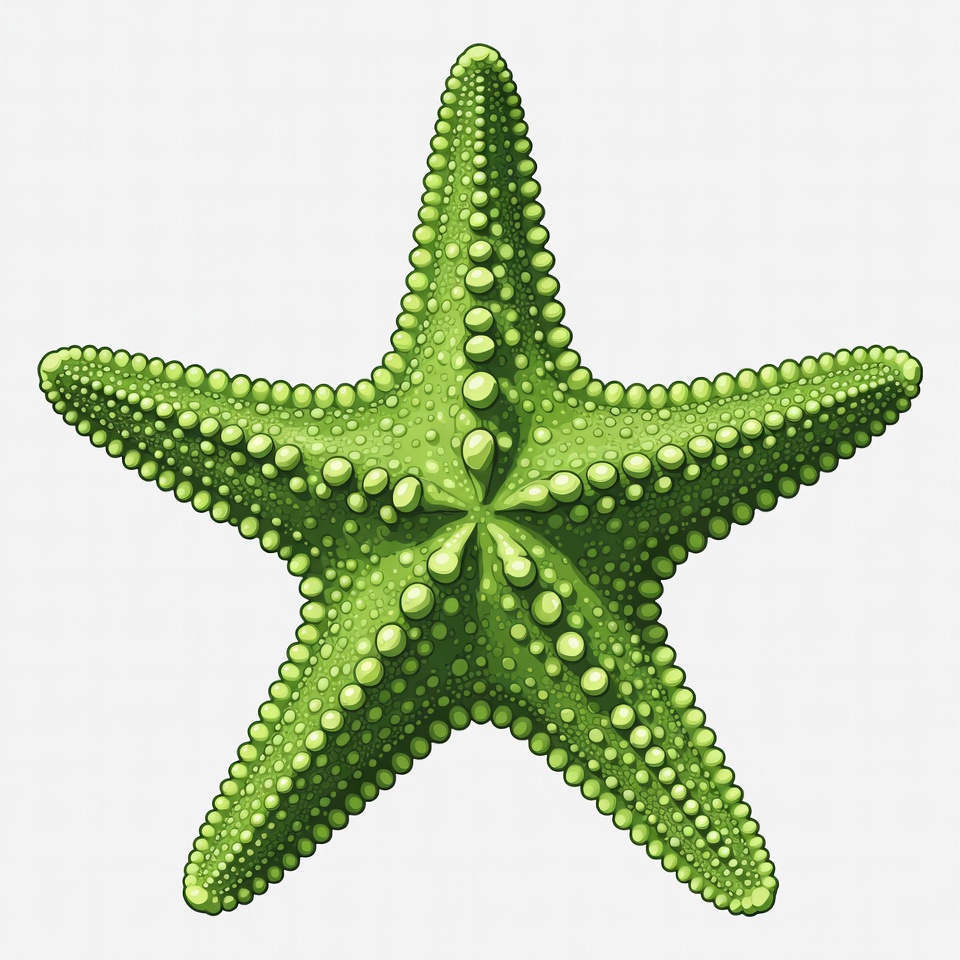 bumpy texture, clipart, five arms, green starfish, illustration, isolated background, marine animal, nature graphic, ocean creature, sea star, vector art, starfish