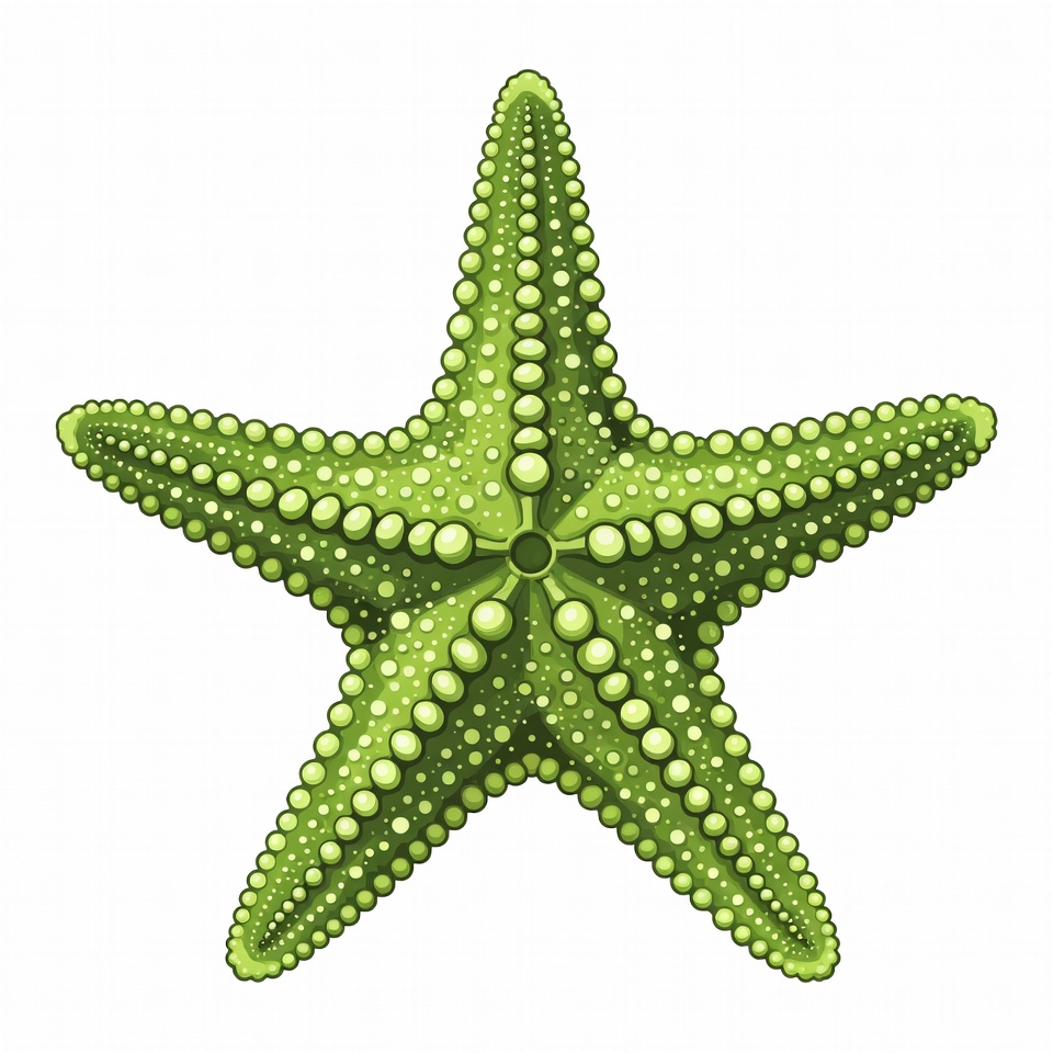 bumpy texture, cartoon starfish, clipart, five arms, green starfish, illustration, isolated background, marine animal, ocean creature, sea star, spiny, vector art, white background, starfish