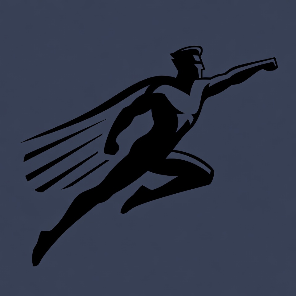 action figure, black outline, cape, clipart, comic hero, dark blue background, dynamic pose, emblem chest, flying, illustration, isolated background, male, man, muscular, silhouette, superhero, vector art, Superman