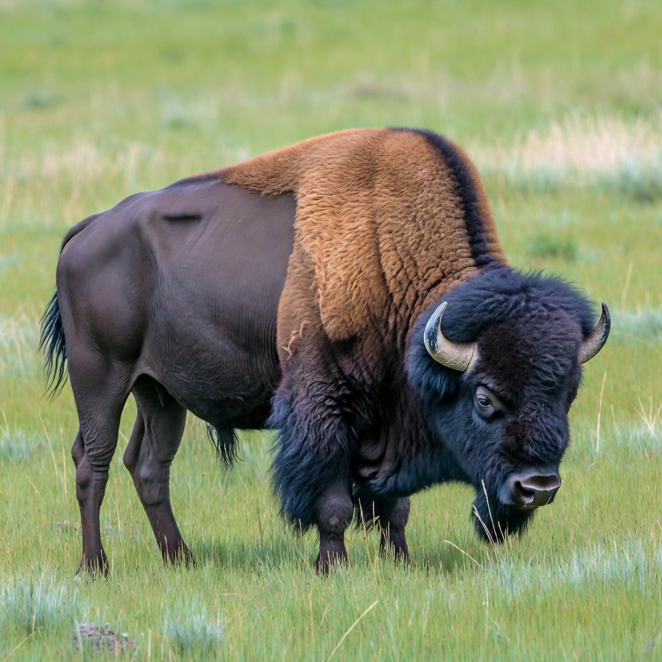 Bison standing in green grassland