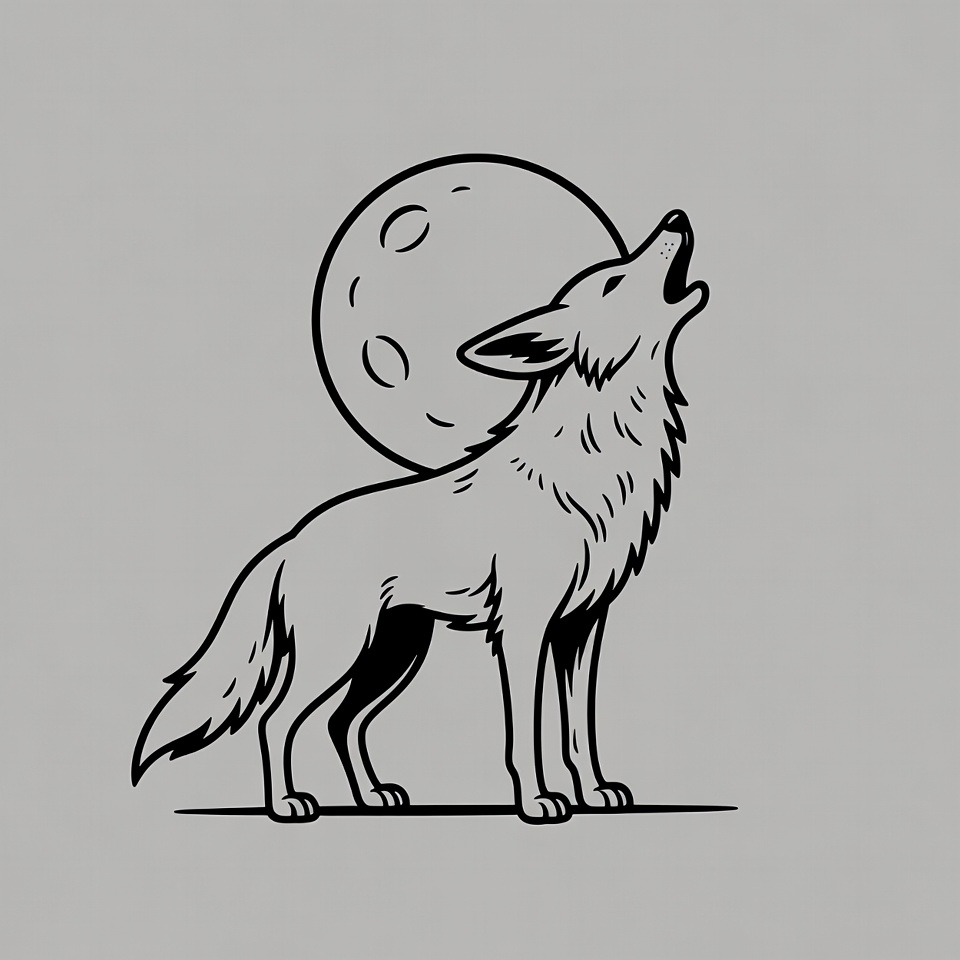 animal, clipart, full moon, furry wolf, howling wolf, illustration, isolated background, line art, moon, night, silhouette, standing wolf, wildlife, wolf howling, wolf silhouette, wolf