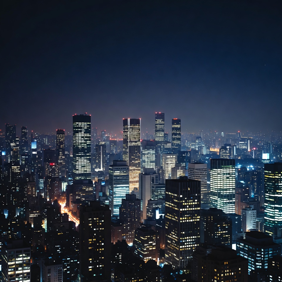 aerial view, architectural lights, bustling city, city at night, city lights, cityscape, dark sky, downtown, glowing skyscrapers, high-rise buildings, illuminated buildings, metropolis, modern architecture, neon lights, night city, night view, rooftop view, skyline panorama, skyscrapers, tall buildings, traffic lights, urban landscape, urban night, vibrant lights, city skyline