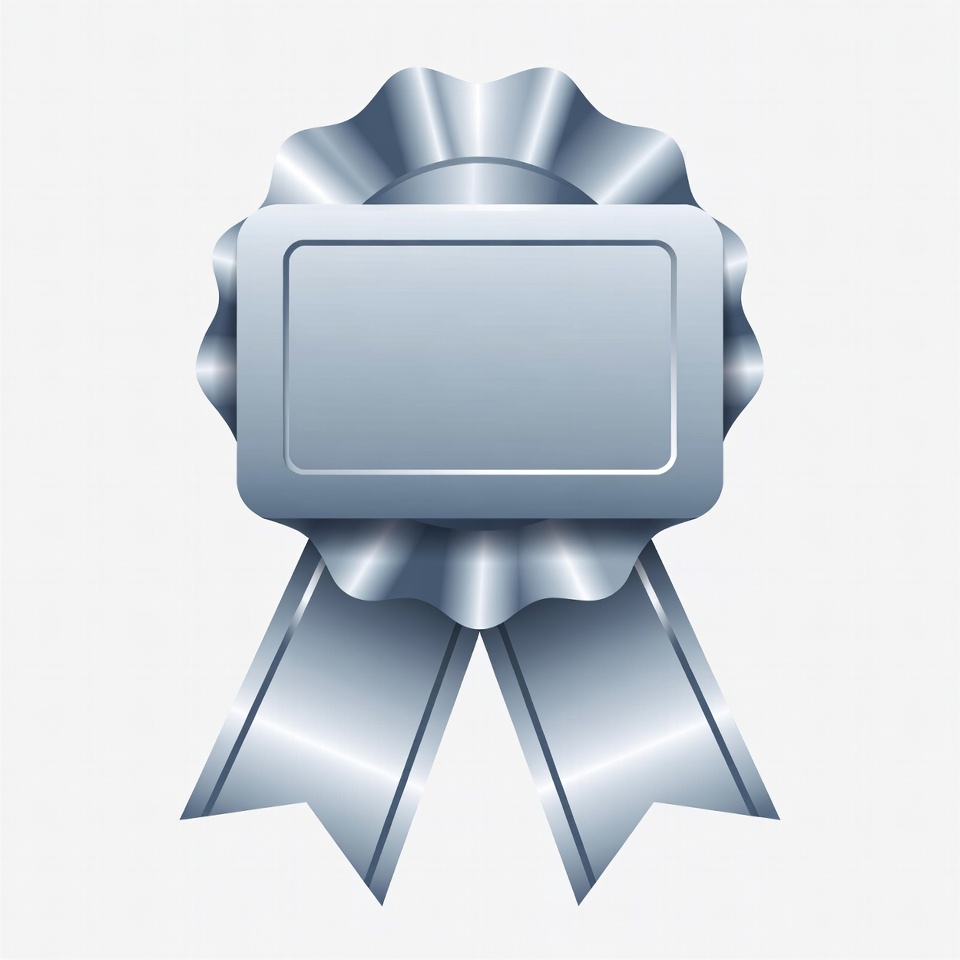 achievement award, award badge, blank badge, clipart, illustration, isolated background, metallic, ribbon award, shiny, silver ribbon, trophy badge, vector, silver badge