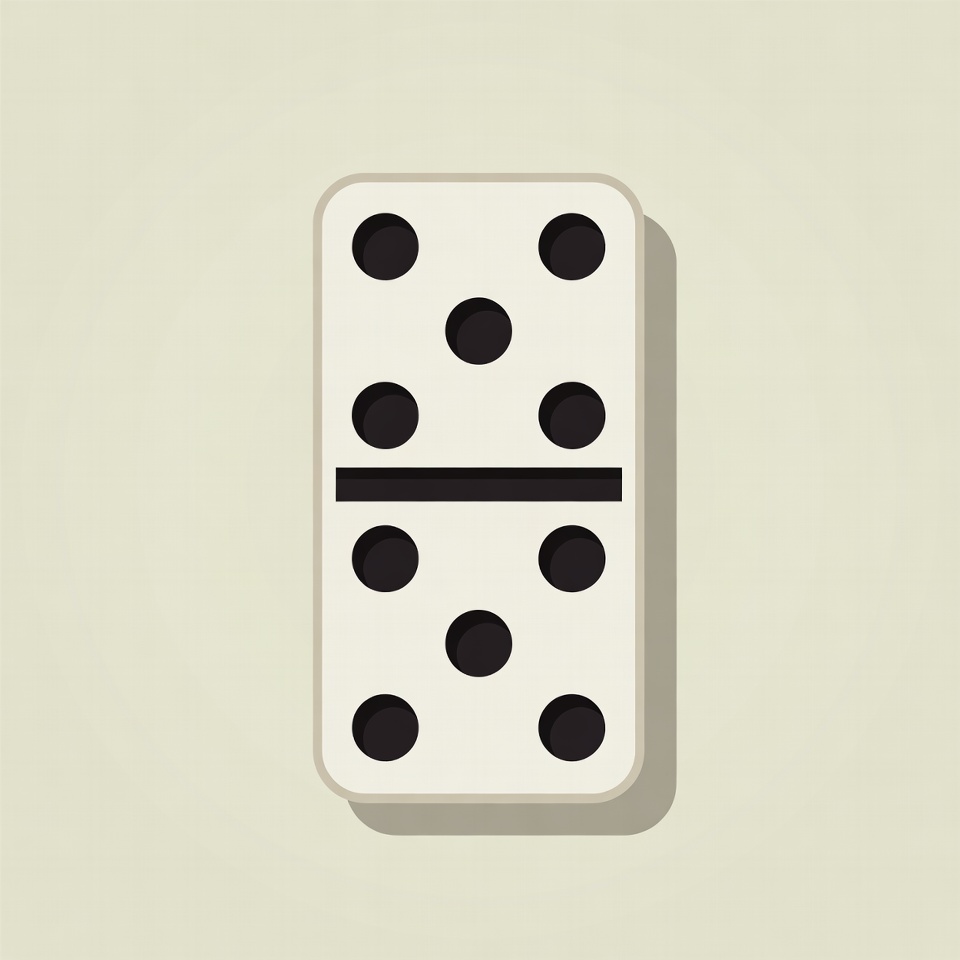 A white double-six domino tile stands vertically on a light beige background. It features six black dots on each half, separated by a black line. The illustration has a subtle drop shadow for a 3D effect.
