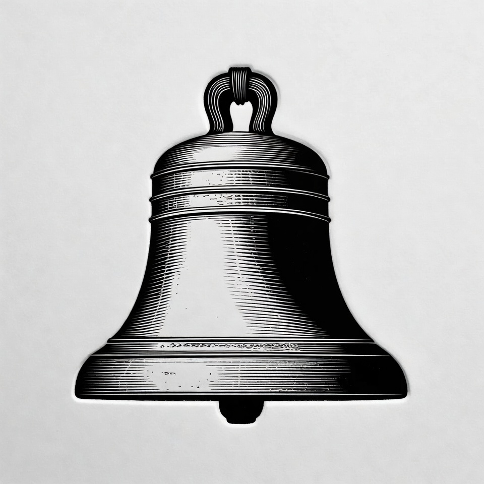 black and white, church bell, clapper, clipart, crosshatching, drawing, engraving style, handle, illustration, isolated background, line art, metal bell, vintage illustration, bell