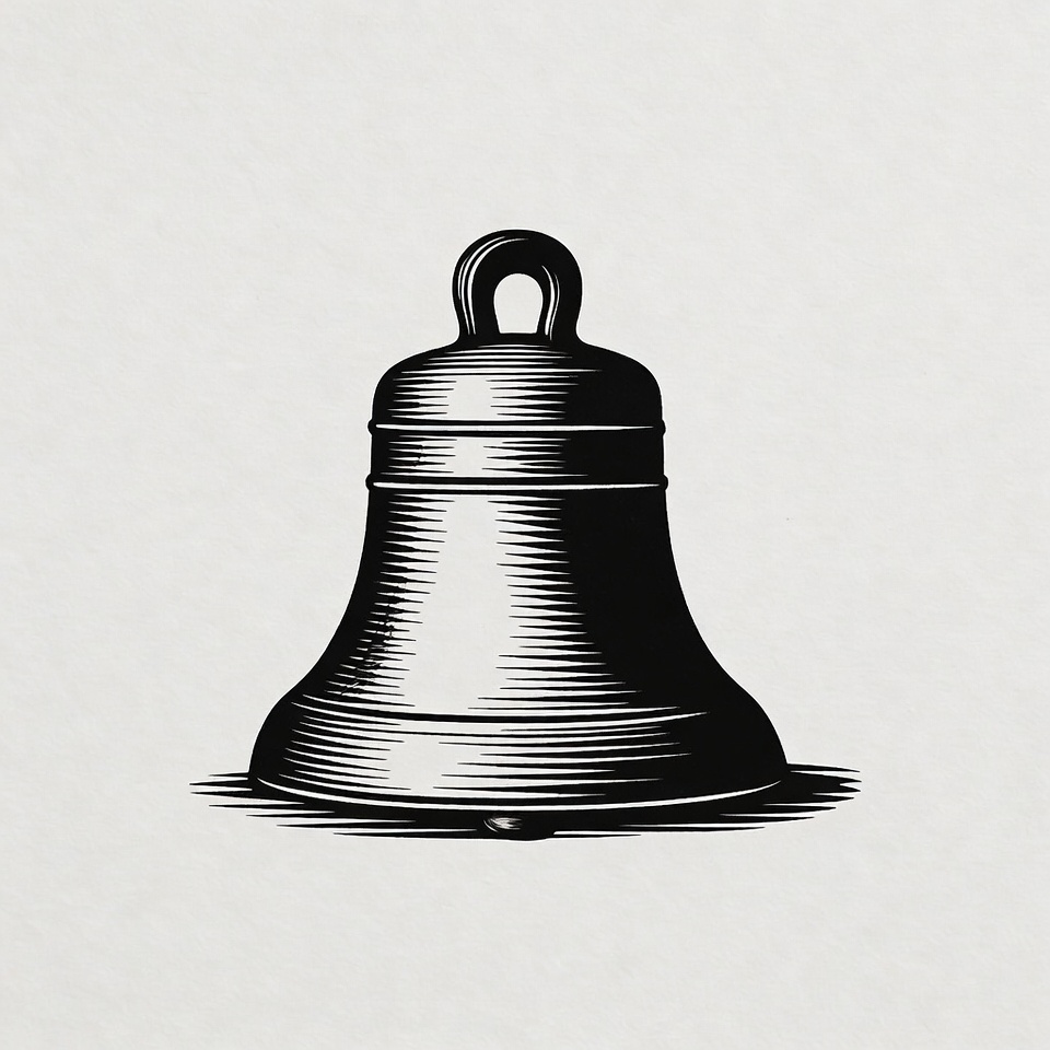 bell, black and white, clipart, engraving style, hand drawn, illustration, isolated background, line art, metal bell, object, symbol, vintage bell, church bell