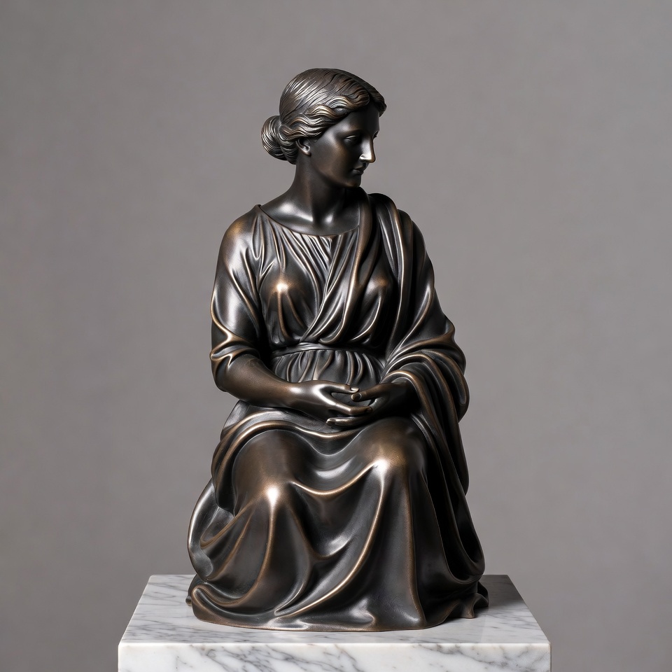 Bronze sculpture of seated classical woman