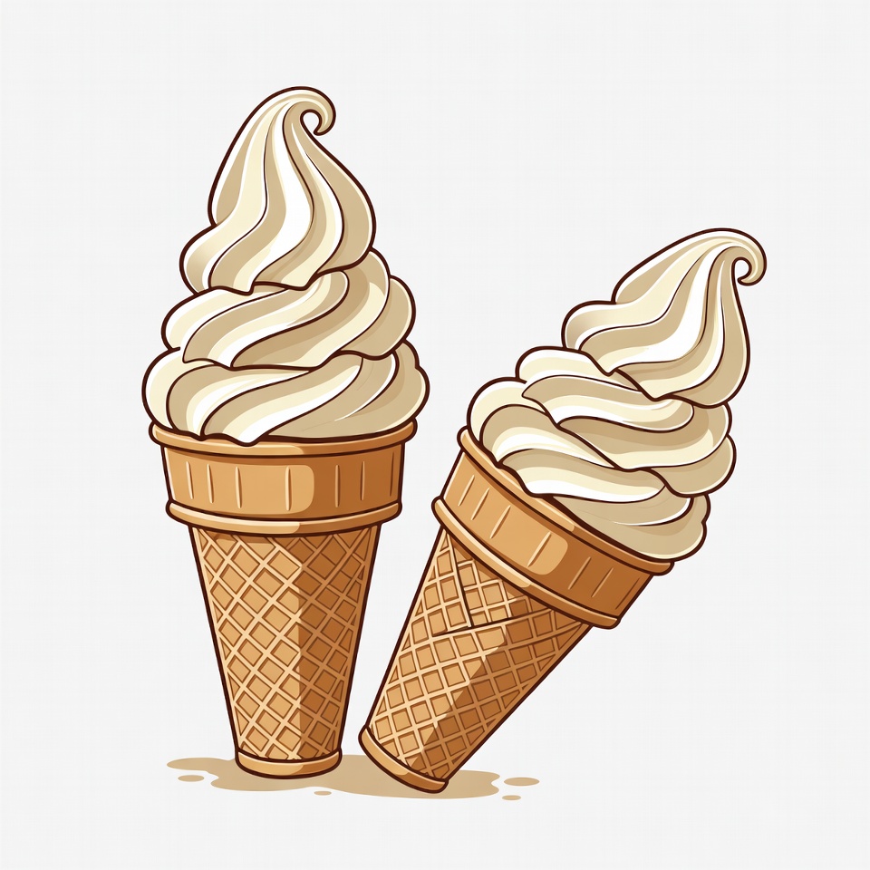 clipart, creamy dessert, dessert, ice cream cone, illustration, isolated background, soft serve, summer treat, sweet treat, swirled ice cream, two cones, vanilla ice cream, waffle cone, white background, ice cream
