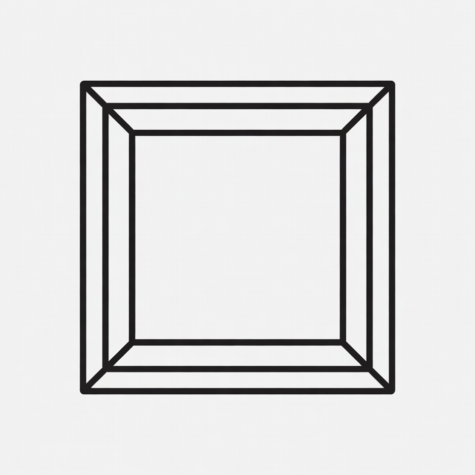 A simple line drawing of a square picture frame with double borders. The frame is depicted in black outline on a white background. The interior space is empty.