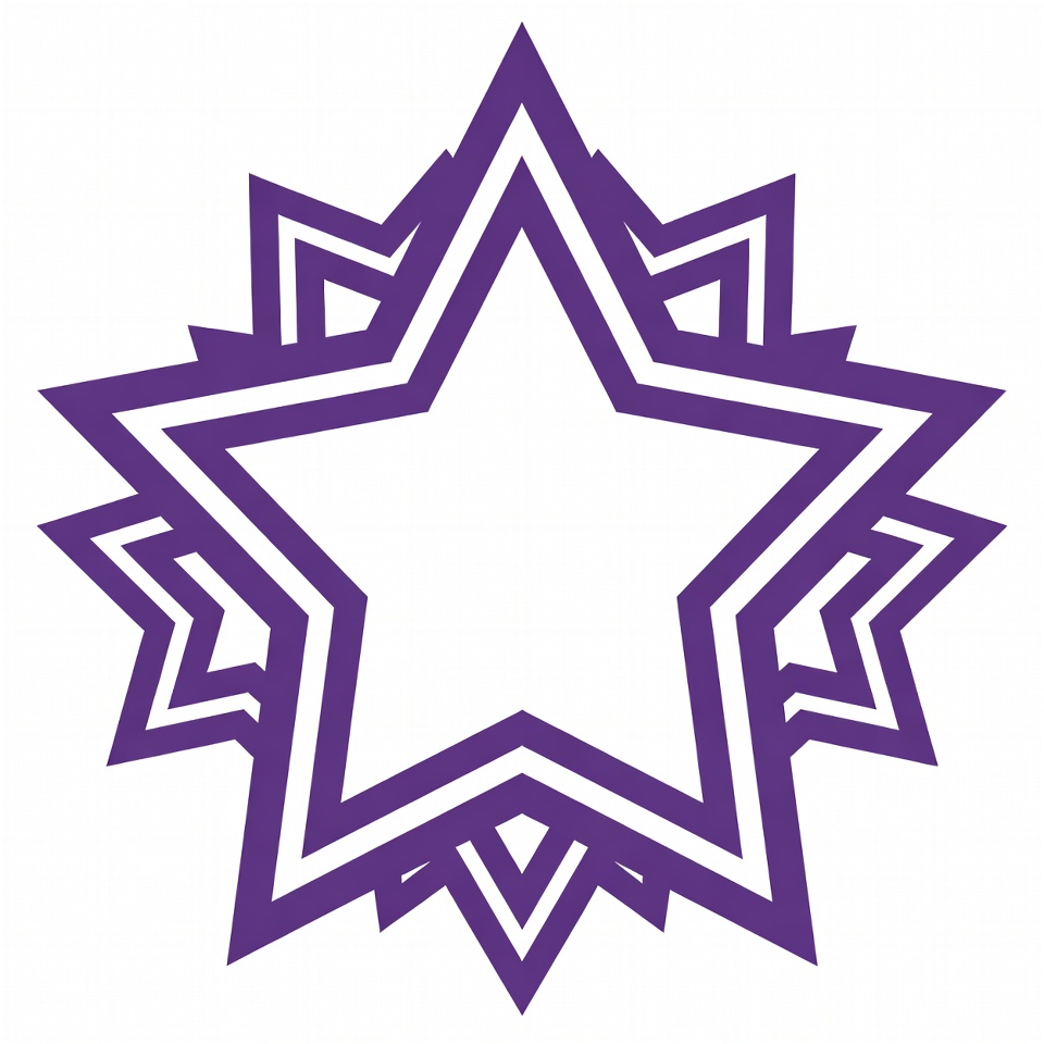 A detailed purple star icon features multiple layered outlines forming a bold, angular shape. The design has a white center with thick purple borders and sharp points. It is rendered as a simple vector graphic on a transparent background.