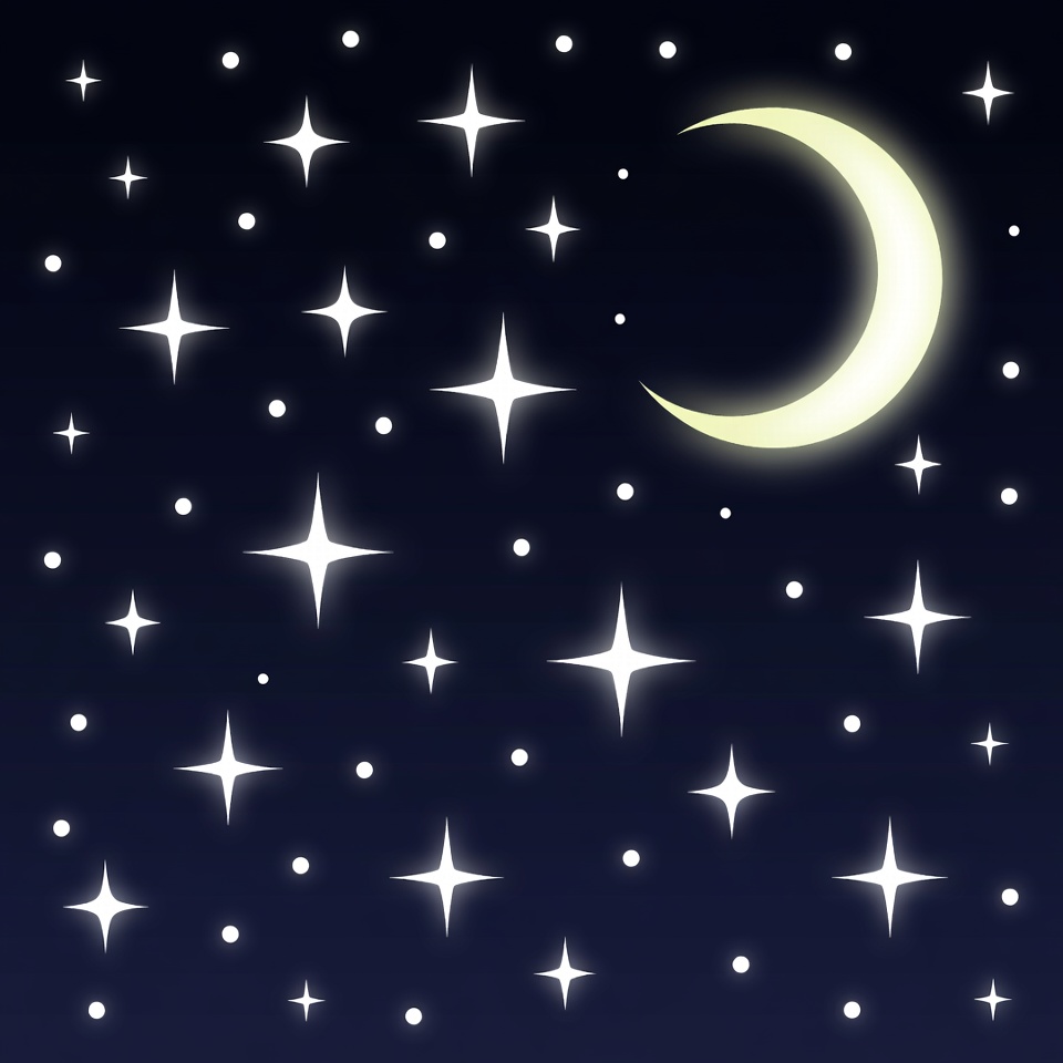 Crescent Moon and Stars Night Sky