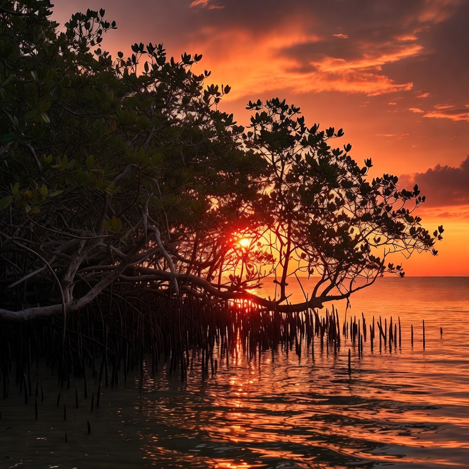 Mangrove Trees at Sunset over Water