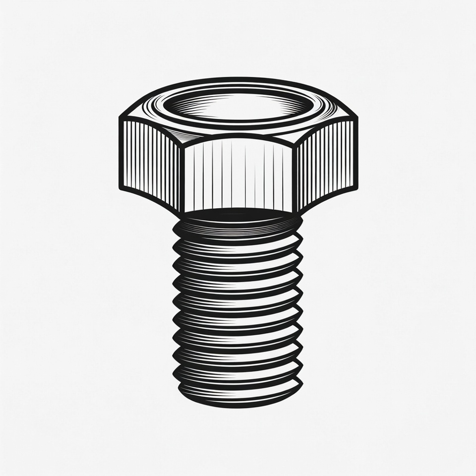 clipart, construction, engineering, fastener, hardware, hex bolt, illustration, isolated background, line art, machinery, metal bolt, screw, threaded bolt, tool, bolt