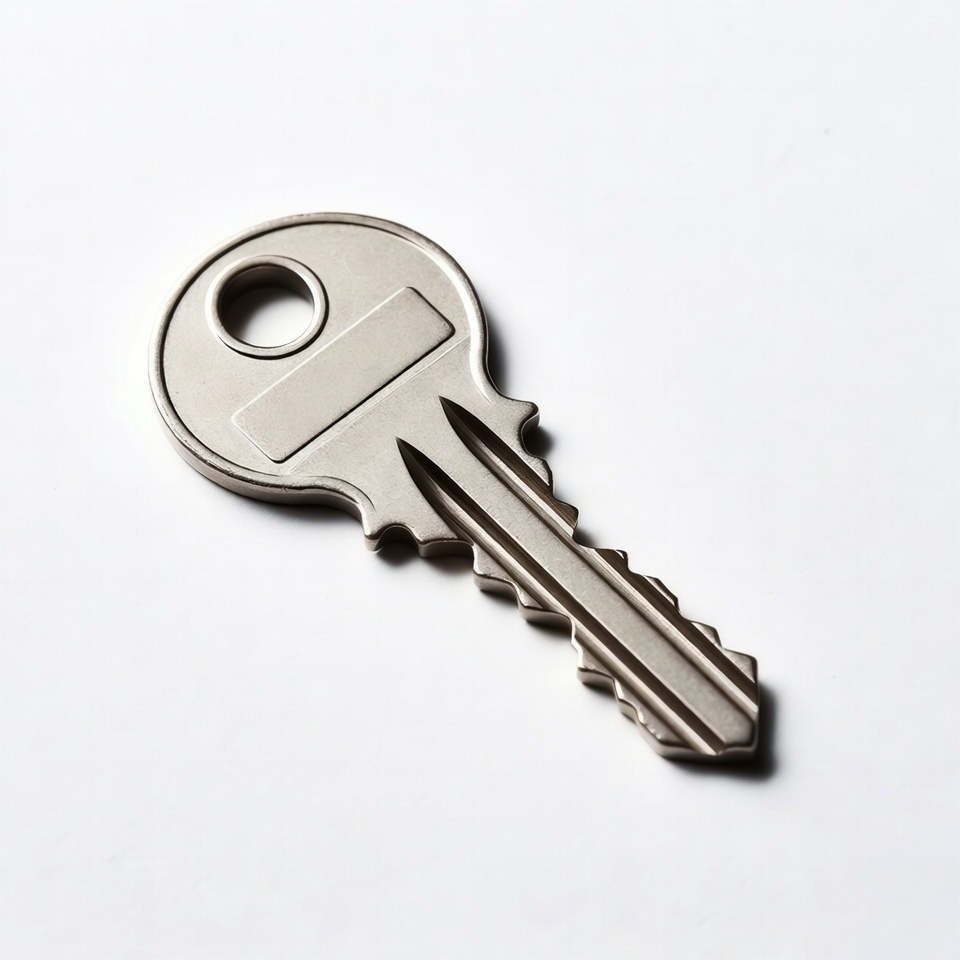 blank key, decorative key, door key, house key, isolated, metal key, metallic, object, shiny, silver key, white background, key