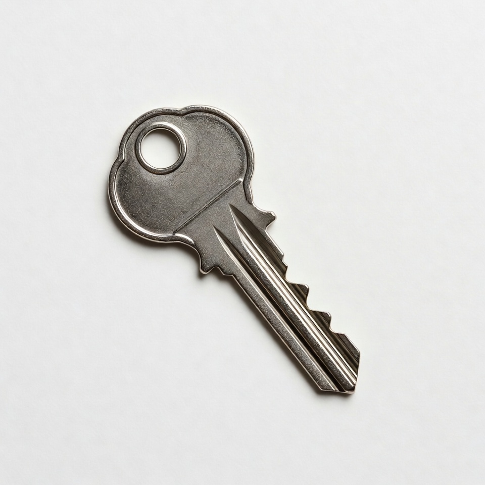 decorative key, door key, house key, isolated, jagged teeth, keychain hole, lock key, metal key, shiny key, silver key, white background, key