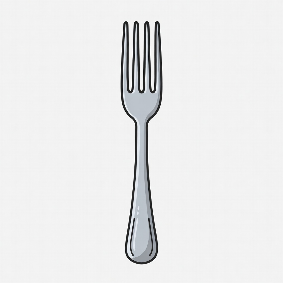 clipart, cutlery, dinner fork, eating utensil, flatware, gray fork, illustration, isolated background, kitchen utensil, metallic fork, silver fork, simple icon, tableware, vector, fork