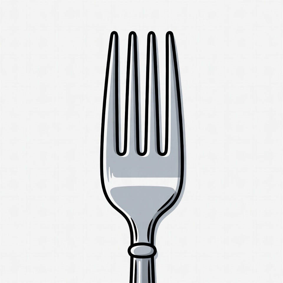 clipart, cutlery, dinner fork, eating utensil, illustration, isolated background, kitchen utensil, line art, metallic fork, silver fork, tableware, vector, white background, fork