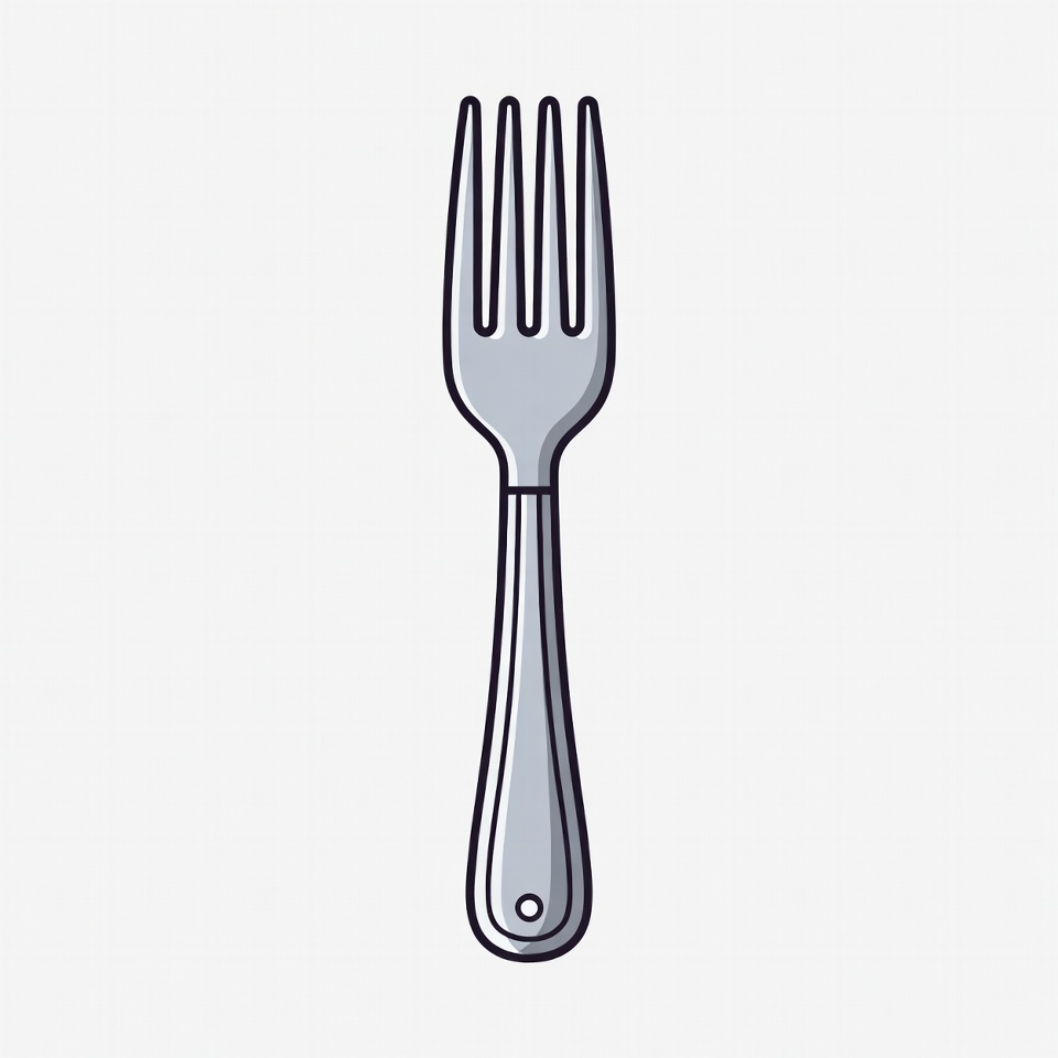 clipart, cutlery, dinner fork, eating utensil, flat design, illustration, isolated background, kitchen utensil, line art, metal fork, silver fork, tableware, utensil, vector art, fork