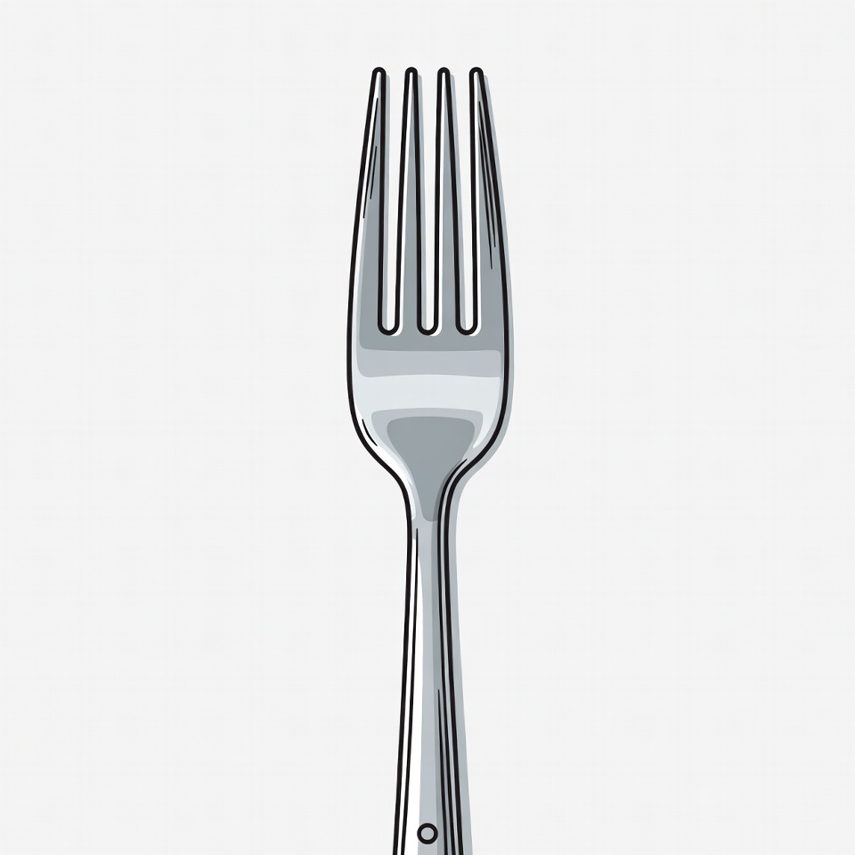 clipart, cutlery, dinner fork, eating utensil, illustration, isolated background, kitchen utensil, line art, metallic fork, silver fork, simple fork, tableware, vector fork, white background, fork