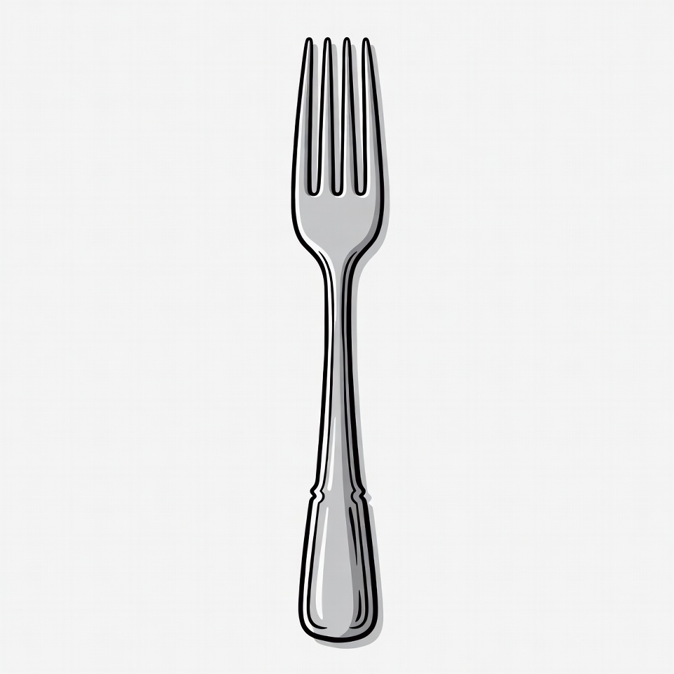 clipart, cutlery, dinner fork, eating utensil, illustration, isolated background, kitchen utensil, line art, metal fork, silver fork, simple drawing, tableware, vector graphic, white background, fork