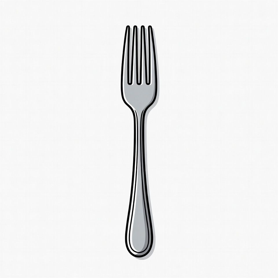 clipart, cutlery, dinner fork, eating utensil, food fork, illustration, isolated background, kitchen utensil, line art, metal fork, silver fork, tableware, vector, fork