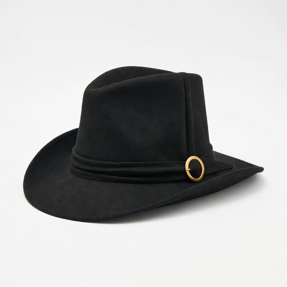 Black felt fedora hat with gold ring