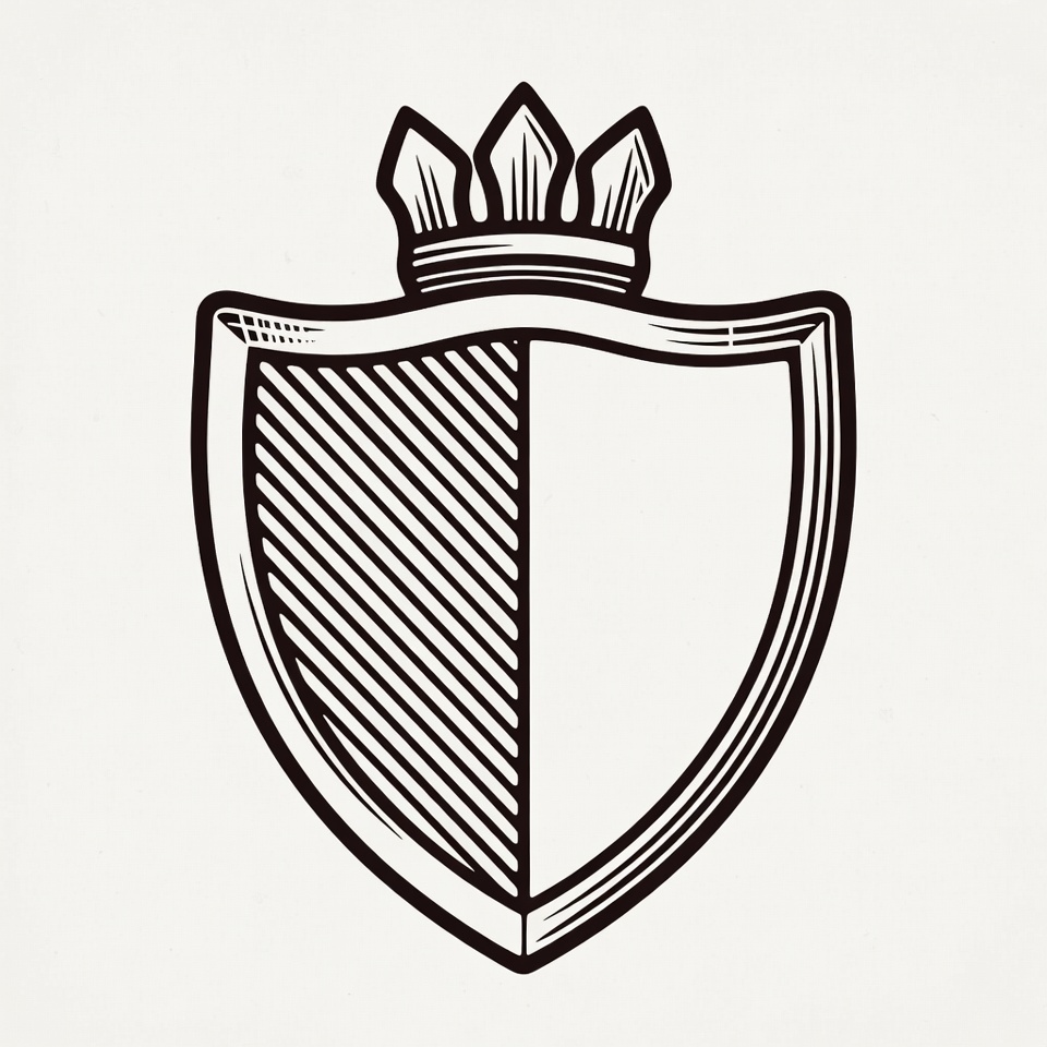 badge, black and white, clipart, coat of arms, crest, crown, emblem, graphic, heraldic symbol, heraldry, illustration, isolated background, line art, medieval shield, ornate crown, royal shield, shield design, striped shield, vector, shield