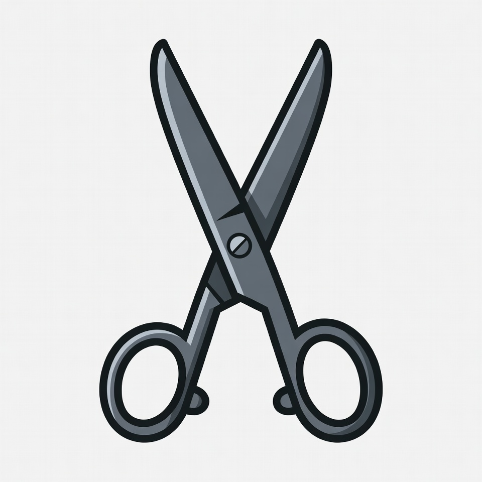 cartoon scissors, clipart, craft tool, cutting tool, graphic, gray scissors, illustration, isolated background, open scissors, paper cutter, simple design, vector, scissors
